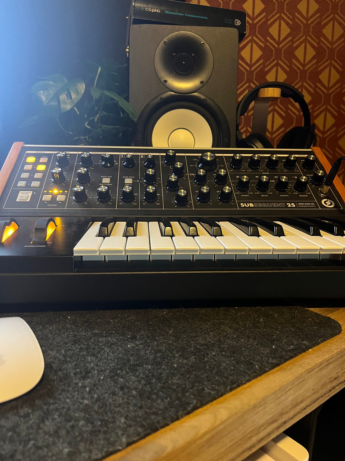 Lately I have been really enjoying playing some of my hardware synths. I upgraded one of them from a Moog Minitaur, to a Moog Subsequent 25, and I have sold a couple of the others. The more I learn sound design and synthesis, the more fun I have using my hardware synths.